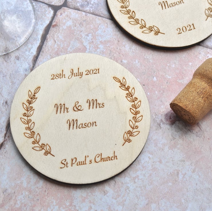 Engraved with your very own wording to this coaster whether it be the wedding date or year, venue/location as well as the title and surname that you require.