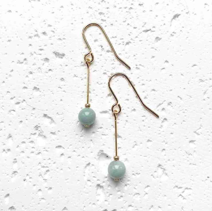 Dainty drop earrings made with a 6mm round natural Amazonite and Miyuki seed beads - Available with Sterling Silver or Gold-Plated Ear Wires (shown).