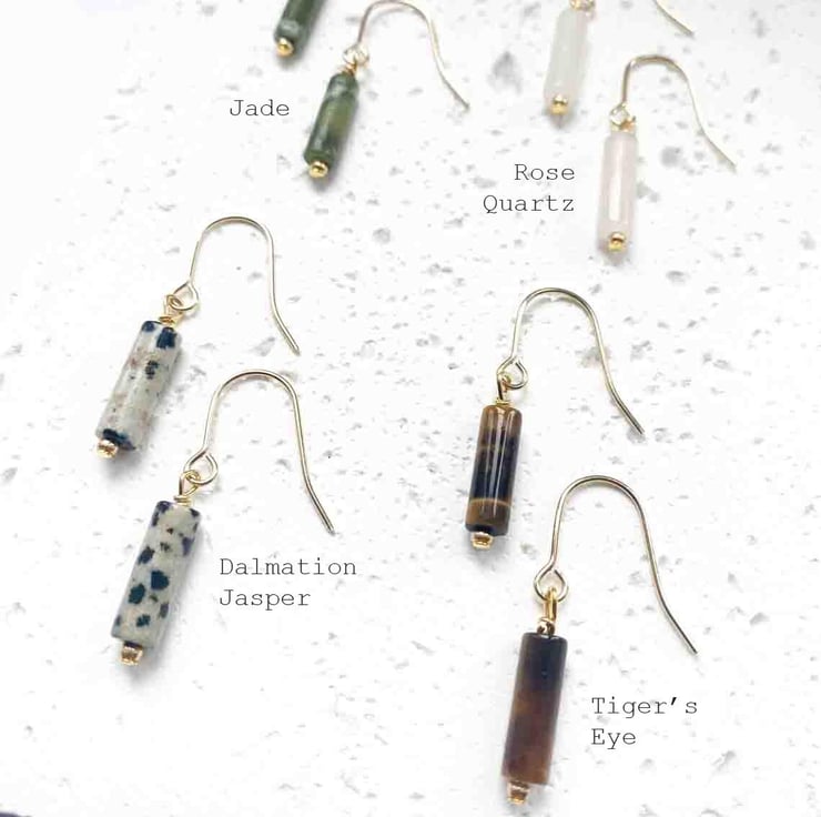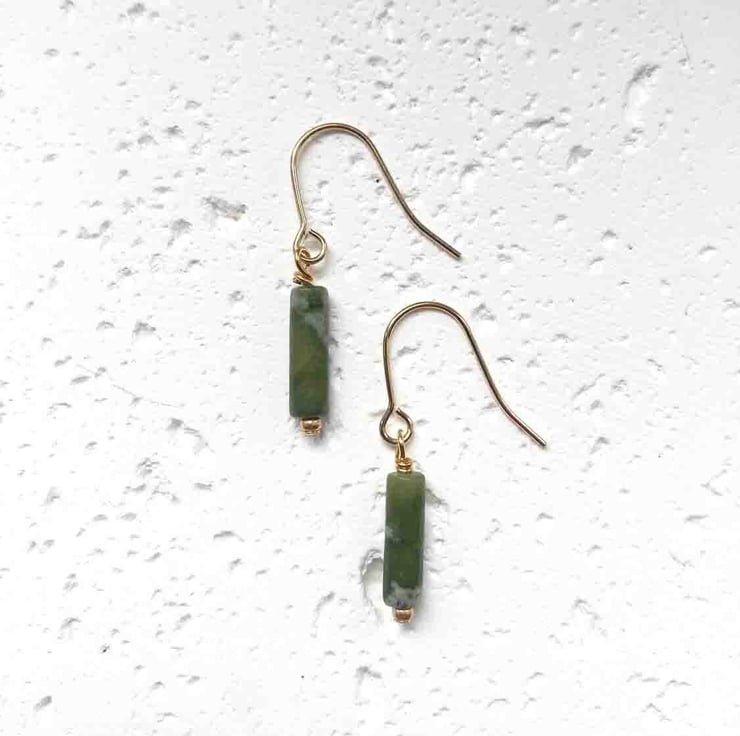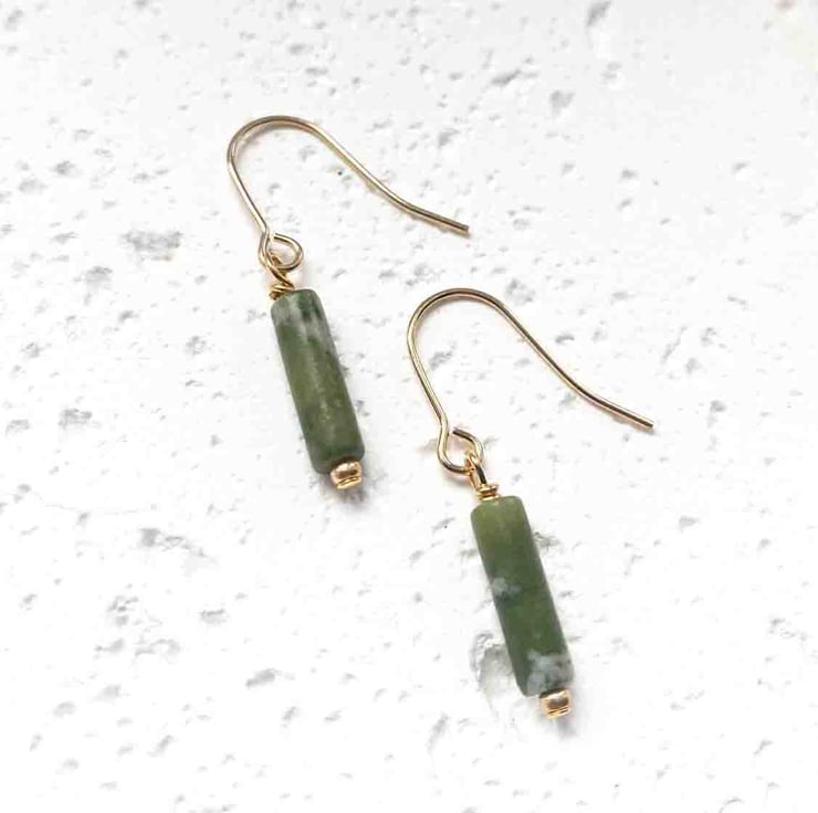 Natural Jade tube drop earrings - Available with Sterling Silver or Gold-Plated Ear Wires (shown).