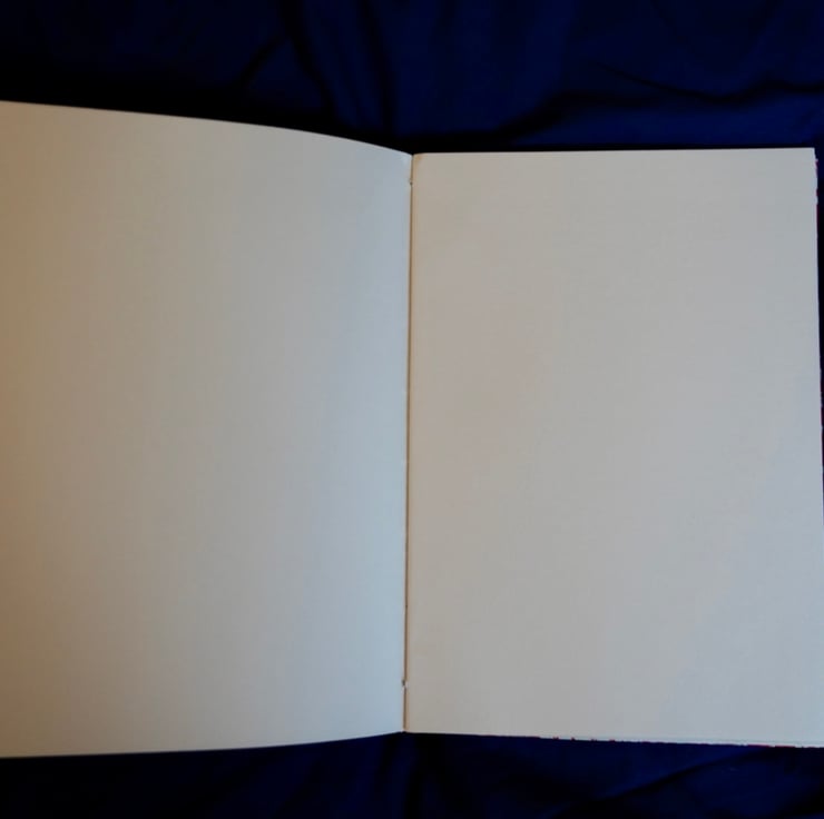 Artist friendly binding that lies flat, allowing for full spread drawing and painting