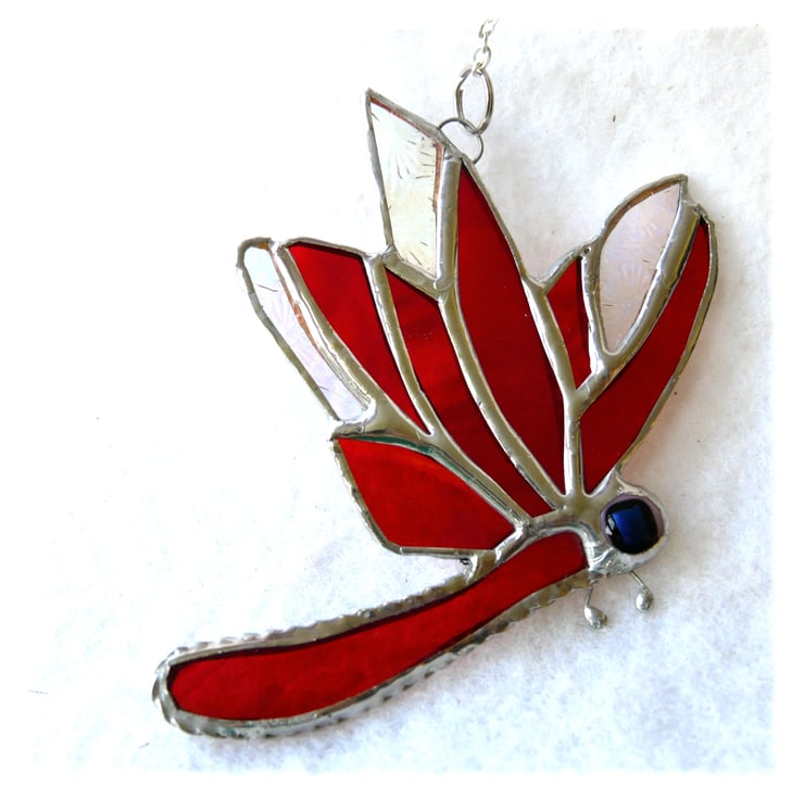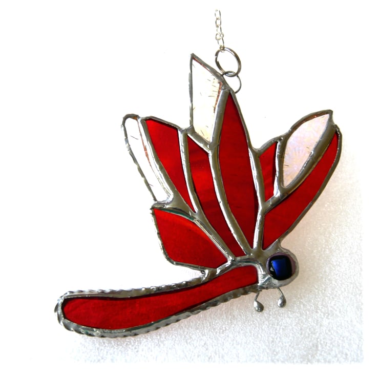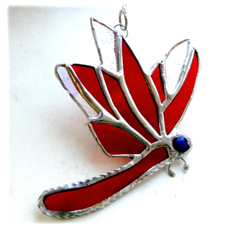It looks really lovely hanging in the window where it catches the light. The suncatcher hangs from a little silver chain which is securely attached to the top of the dragonfly.