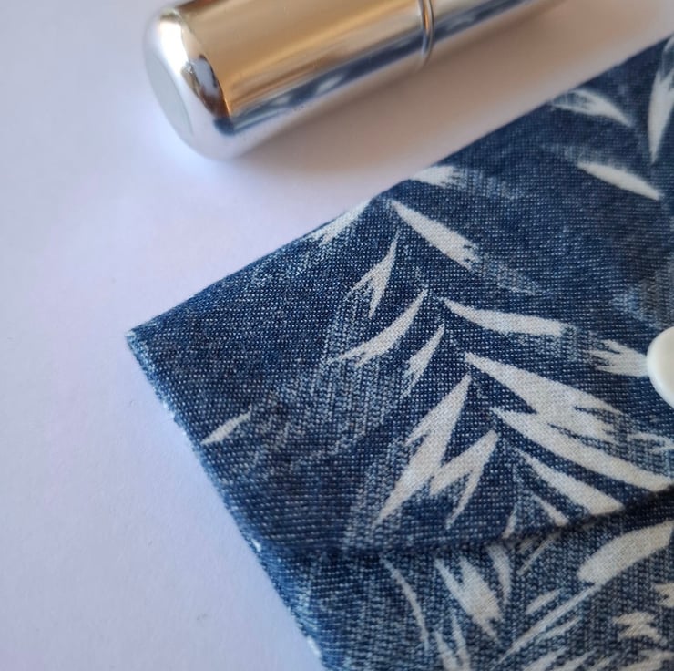 This lovely card holder is handmade using cotton chambray type fabric and has a self-lining.