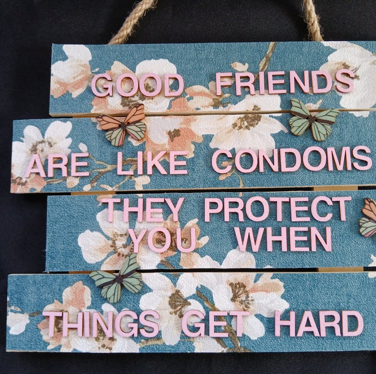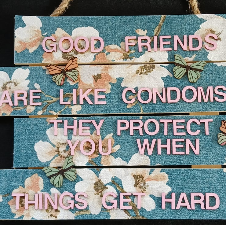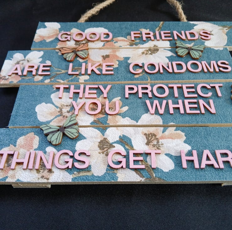 Hand decorated hanging wooden sign