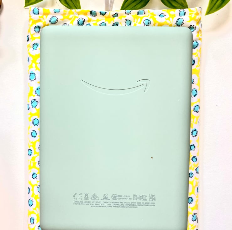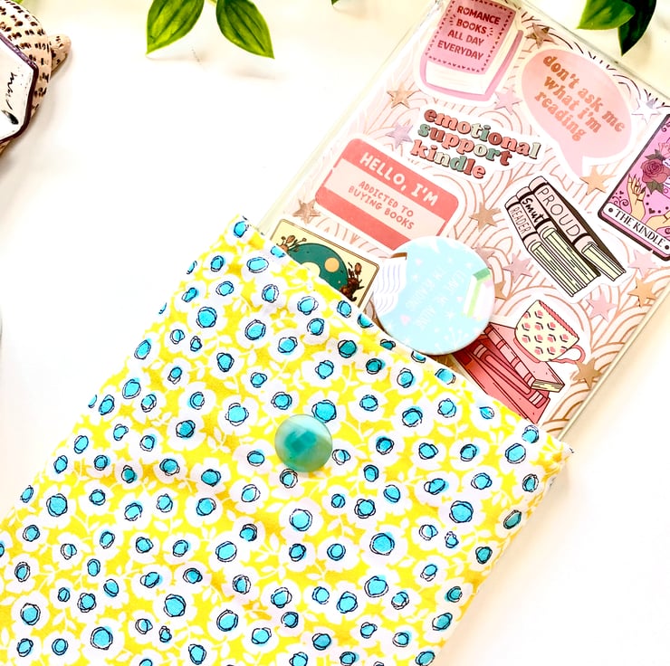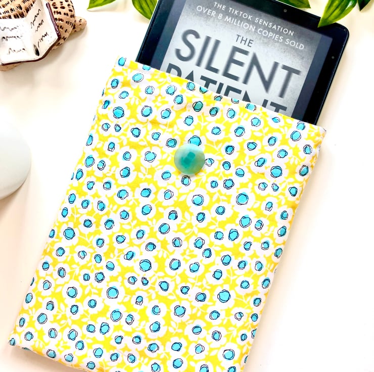 Handmade Yellow and Blue Floral Kindle Sleeve, E-reader pouch, Fabric Sleeve