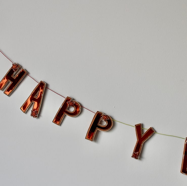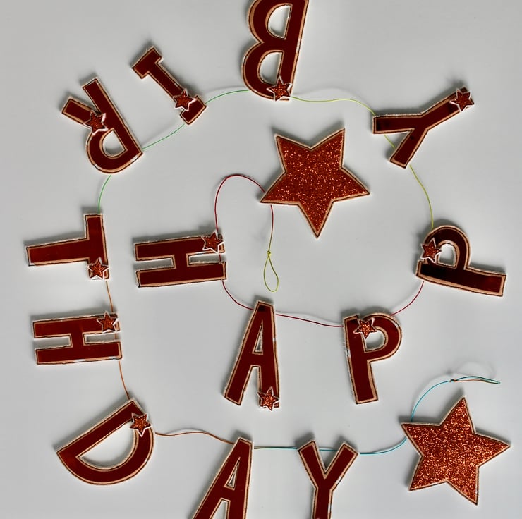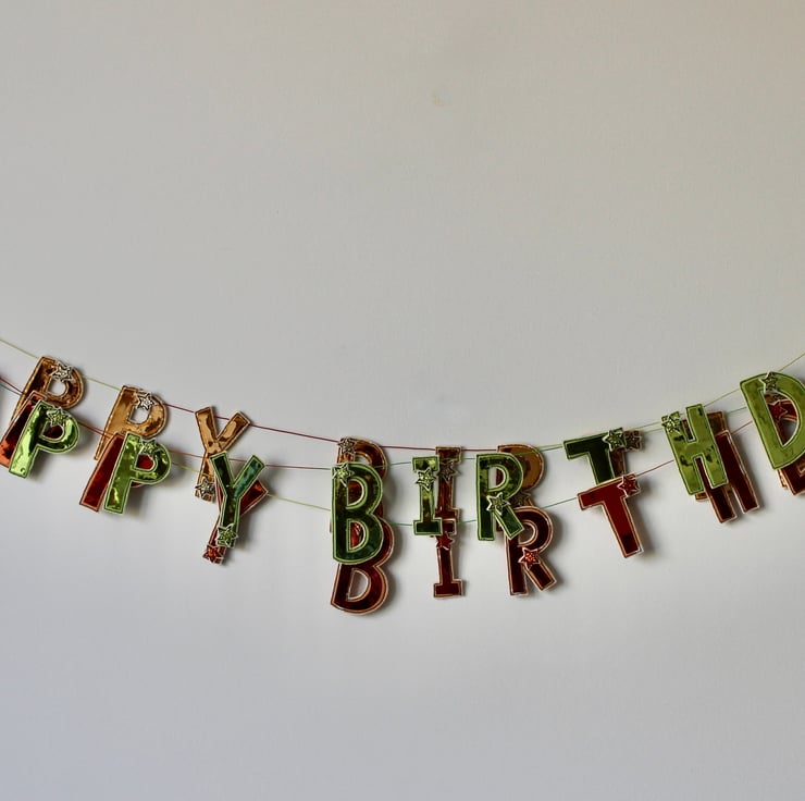 A handmade 'Happy Birthday' garland, which can be used year after year.