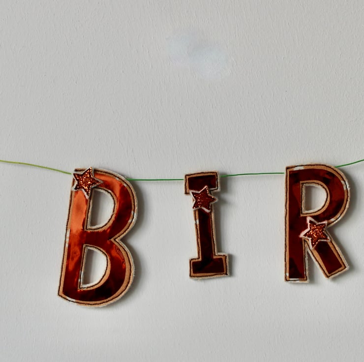 The letters and stars are suspended on a multi-coloured linen thread and can be moved along the length, allowing a little creativity with spacing.