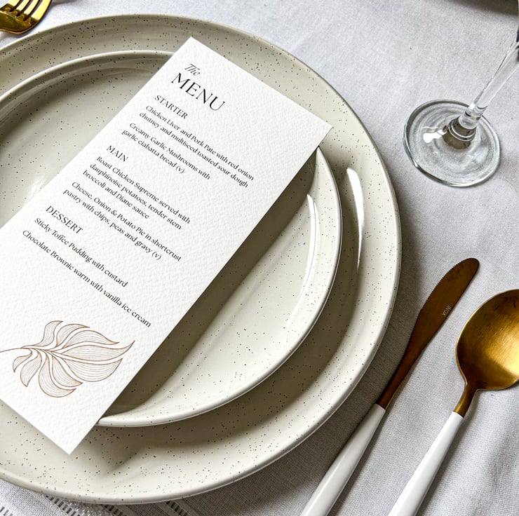Enhance your event’s dining experience with our Personalised Modern Wedding Menu Cards. These minimalist, textured paper menus are perfect for weddings, baby showers, birthdays, and other special occasions, adding a touch of elegance to your table settings.