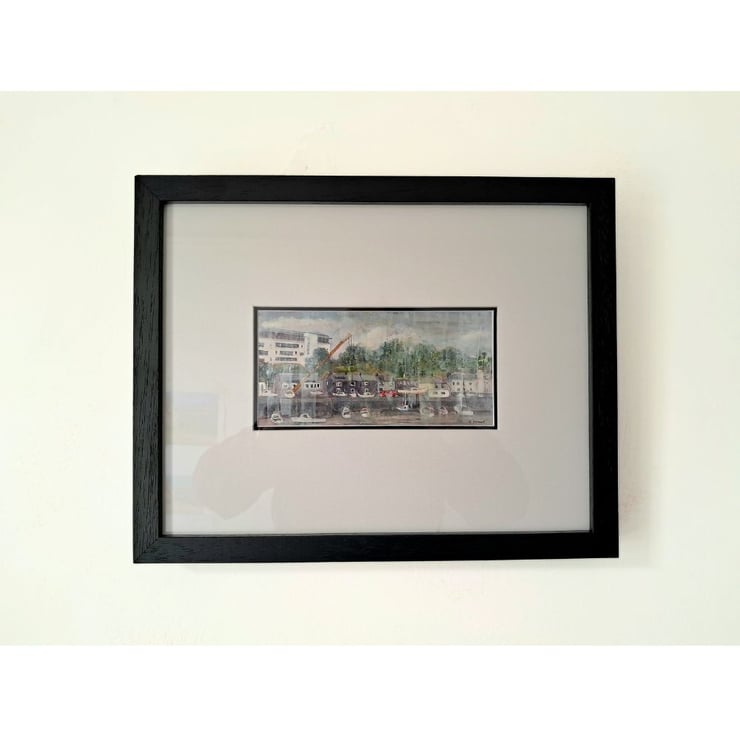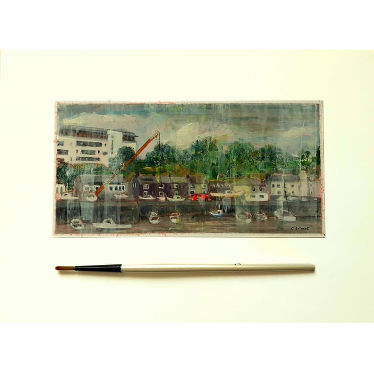 Unique letterbox aspect impressionistic painting of Richmond Walk, Plymouth, viewed from the Cremyll ferry slipway and based on my own sketches. An often overlooked part of the Plymouth waterfront, but brimming with character.