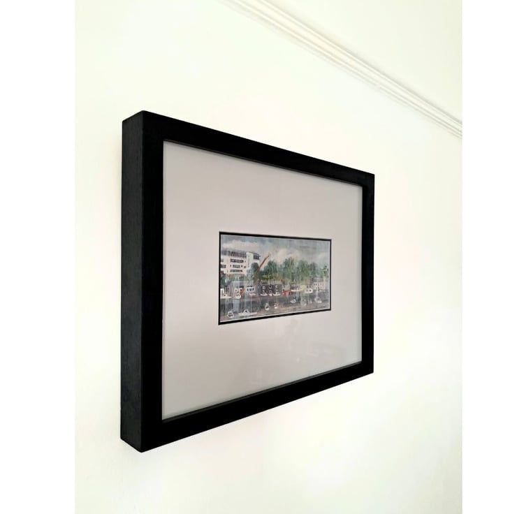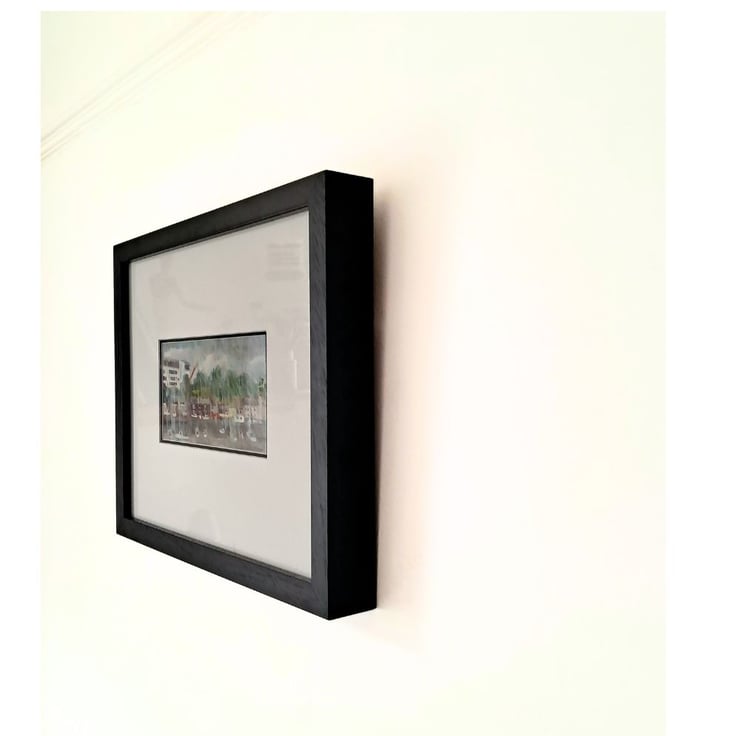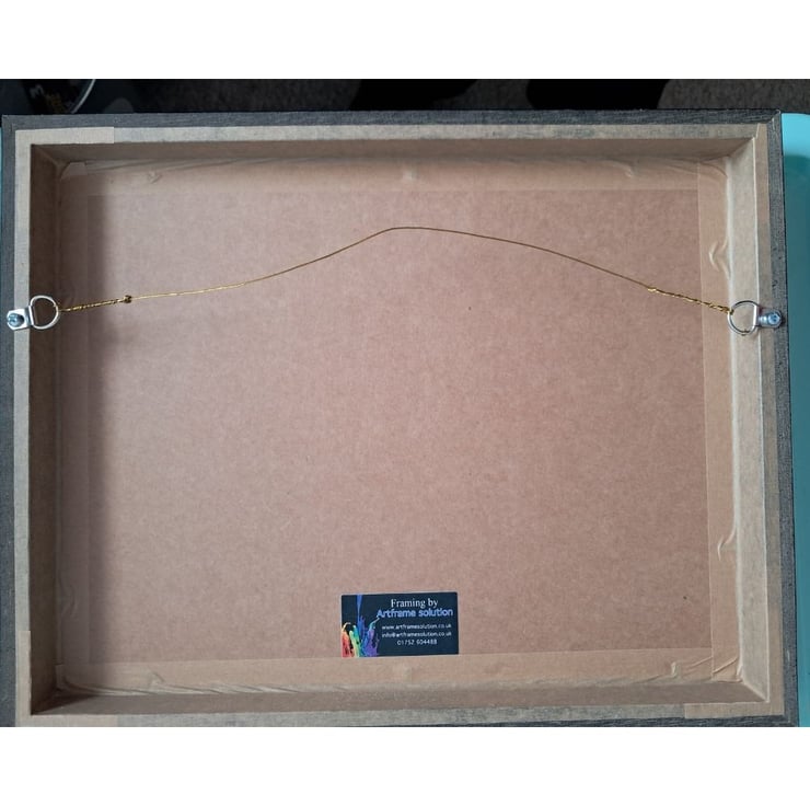 Framed dimensions: 40 cm x 32 cm x 4 cm (15.7" x 12.5" x 1.5". Image dimensions 20 cm x 10 cm in letterbox format.