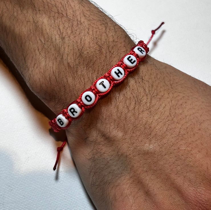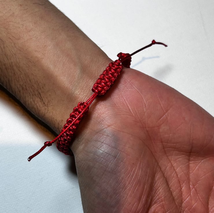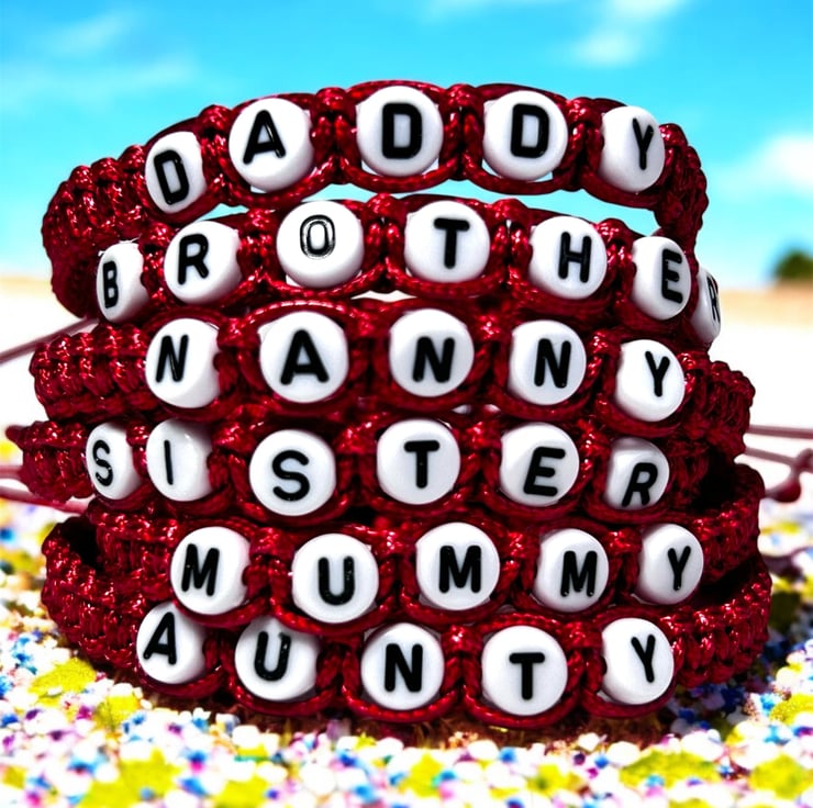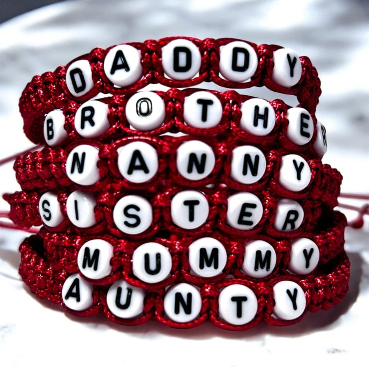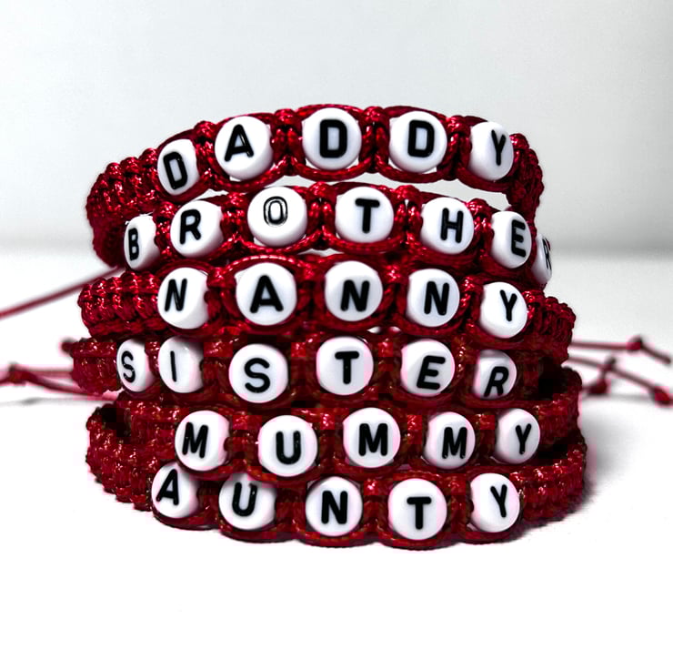 Stylish red hand woven bracelet for family members.