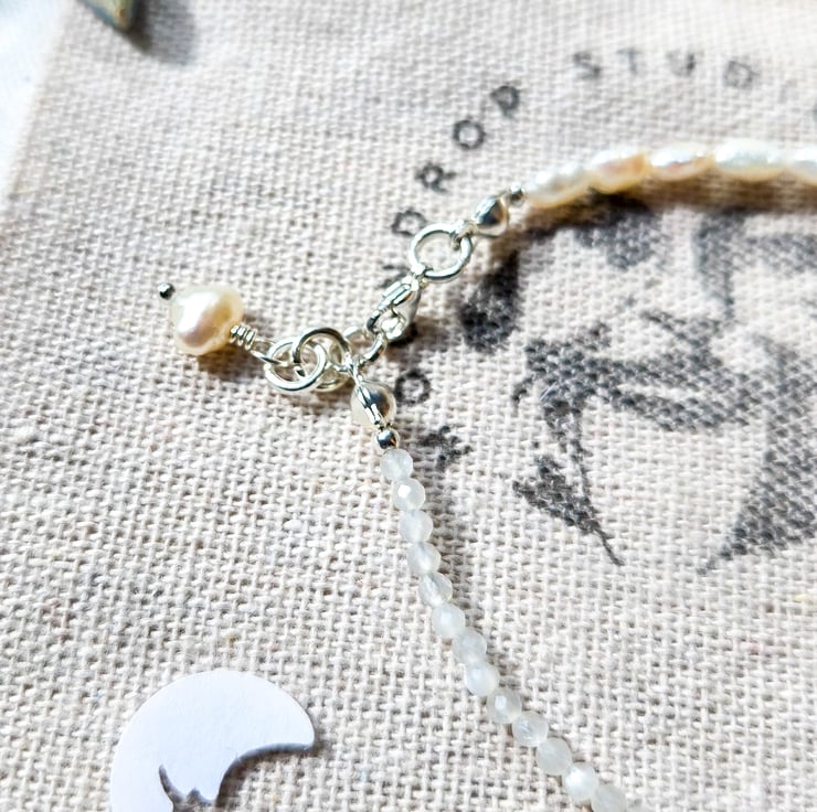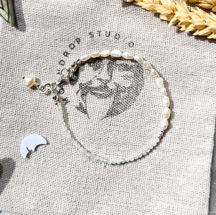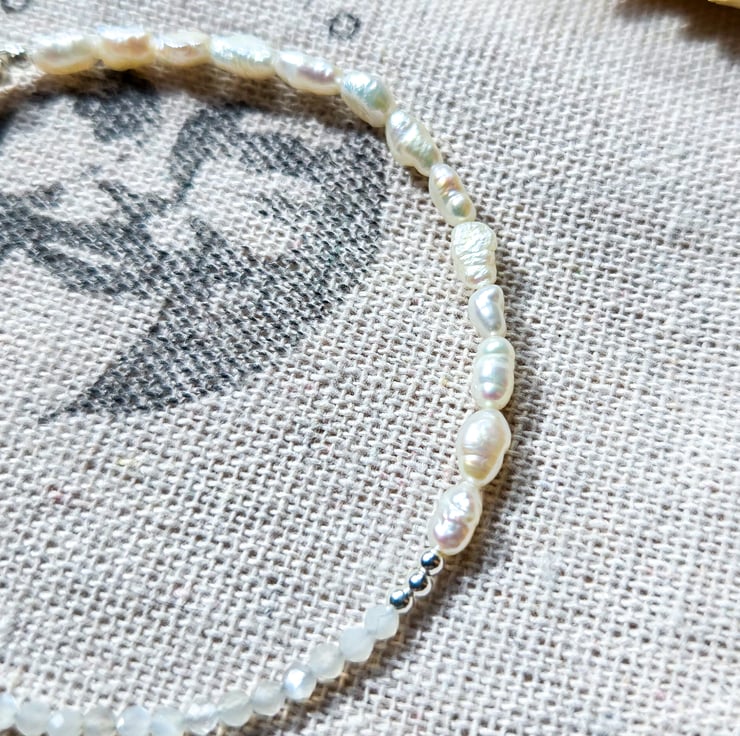 X1 freshwater ivory baroque 'rice crispy' style pearl bracelet with 2.4mm faceted White Moonstone gemstone beads.