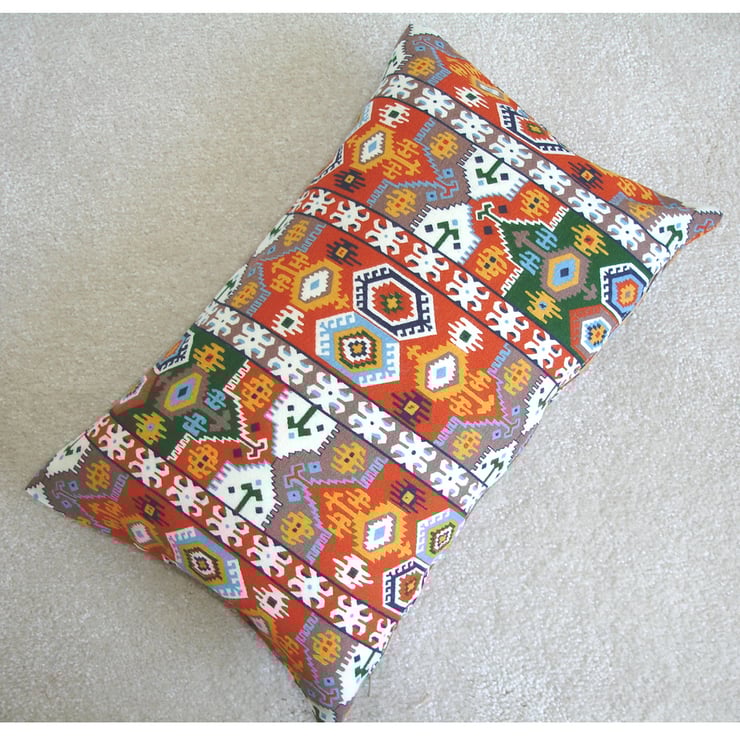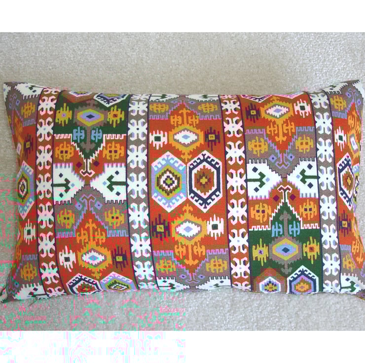 Aztec design in Terracotta Orange, Brown, Blue, Green and Gold