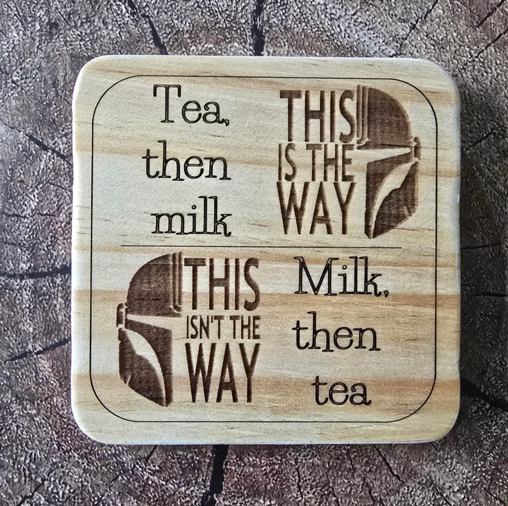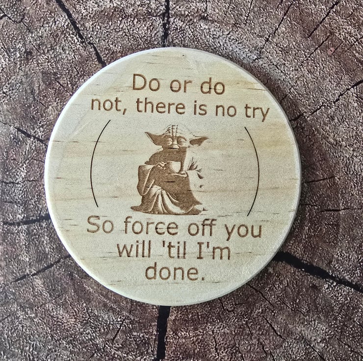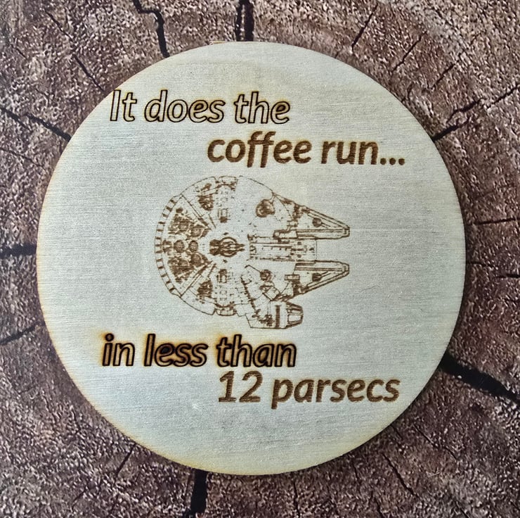 This range of Star Wars inspired coasters come in either round or square and 2 different thicknesses. 10x10x0.8cm square, 10x10x0.2cm square, 10cm diameter, 0.08cm thick or 10cm diameter 0.2cm thick. The 0.8mm thick coasters have 4 foam pads underneath while the 0.2cm coasters have a cork base. They are also finished with varnish. These items are made to order. Exact designs may differ from the photos, depending on the shape and thickness of coaster you choose.