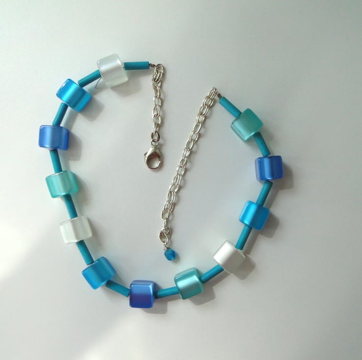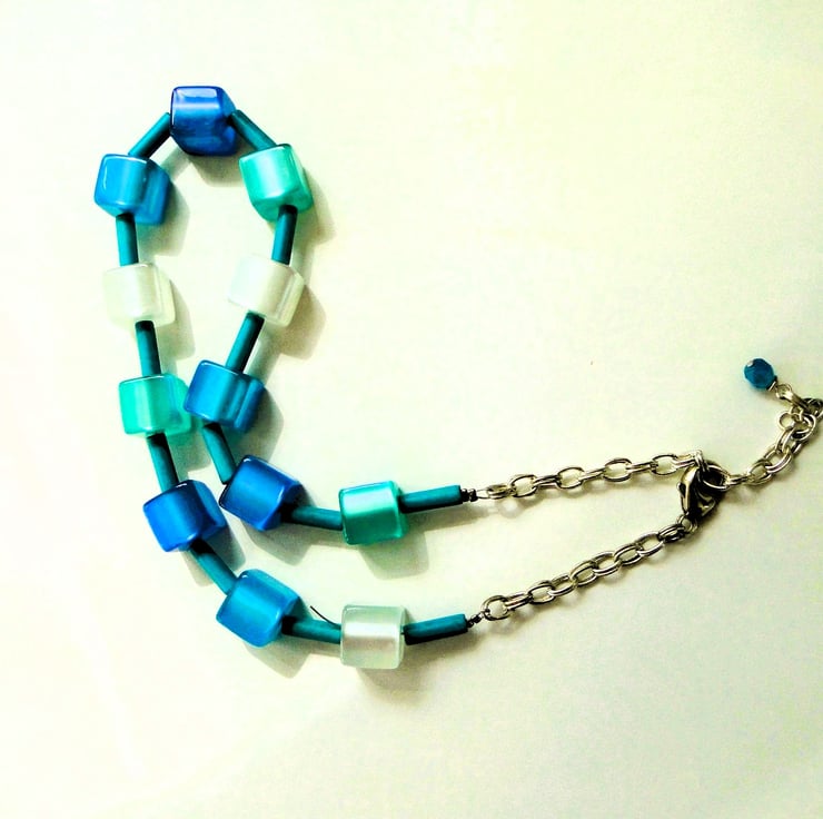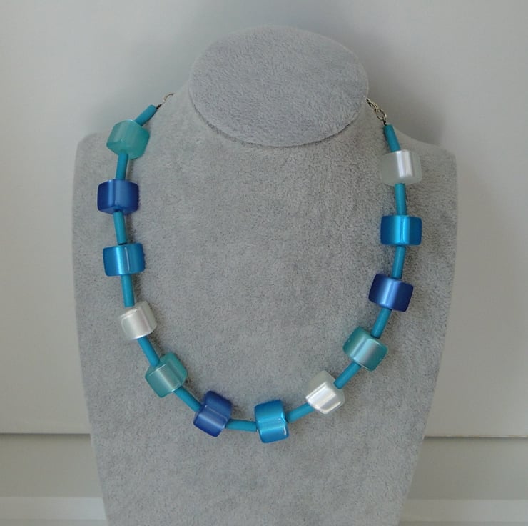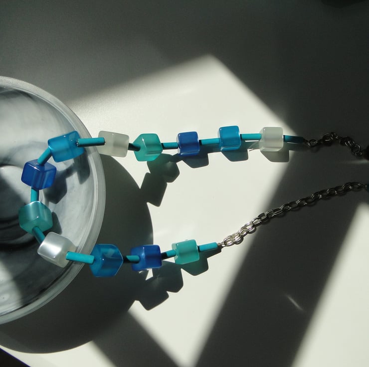 Something blue   Necklace in multiple shades of blue cubes  Summer   Daytime