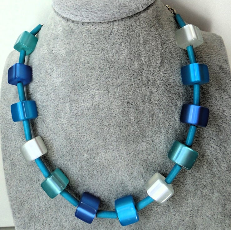 Something blue Necklace in multiple shades of blue cubes Summer Daytime