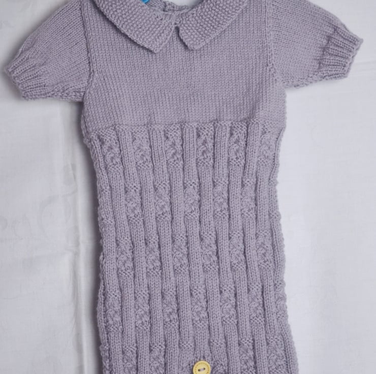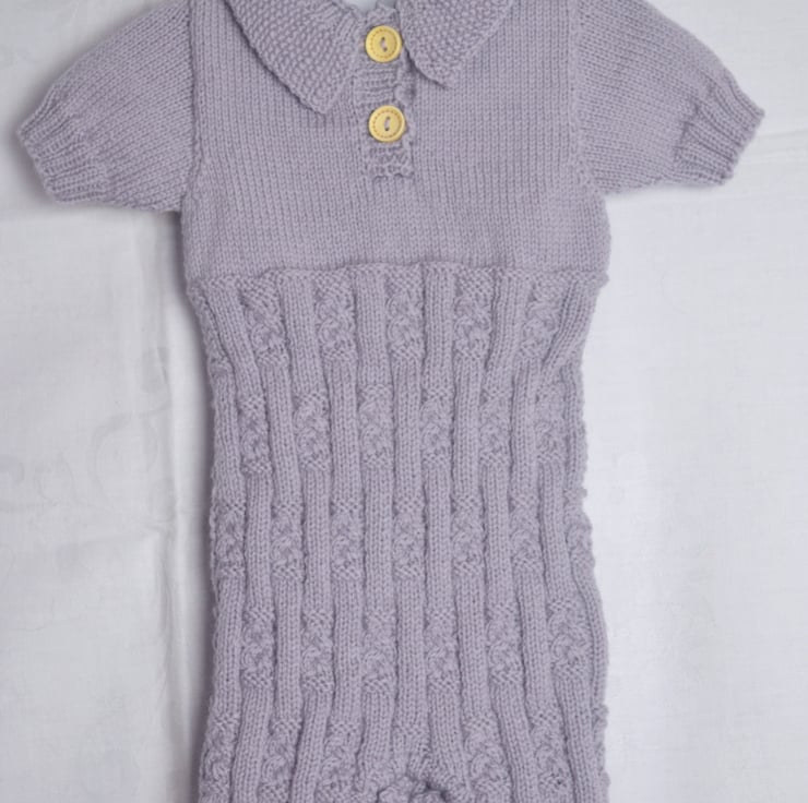 Hand Knitted Baby Overall Short Sleeved with Collar Lilac 100% Merino 3 months