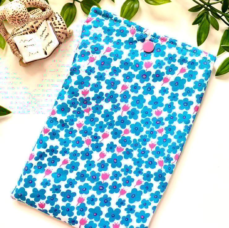 Handmade Blue Floral Kindle Sleeve, E-reader pouch, Fabric Sleeve, Kindle Case