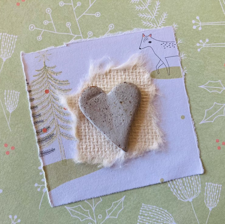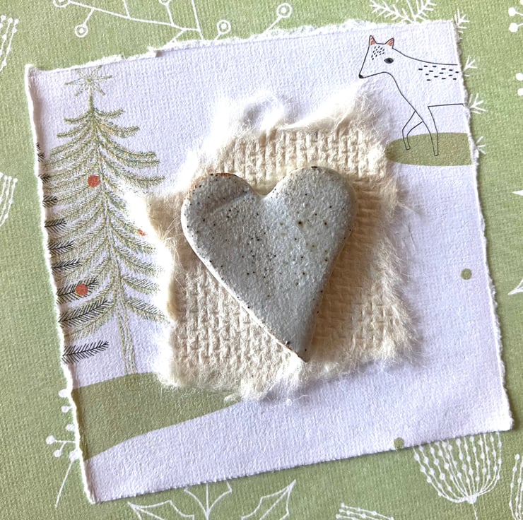 The papers are decorated with Christmas symbols. The ceramic love heart is made by myself and glazed in a white stoneware glaze fired to 1260 degrees.