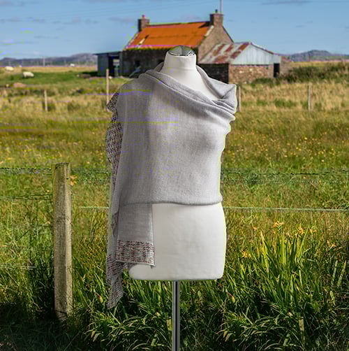 Super fine lightweight merino wool stole is the perfect cover up, but so light and fine can also be worn as a scarf. Knitted in a very fine merino wool in an silver grey colour with a contrast edging. The edging colour can be personalised to suit your outfit, perfect for a bride, bridesmaids or wedding guest.