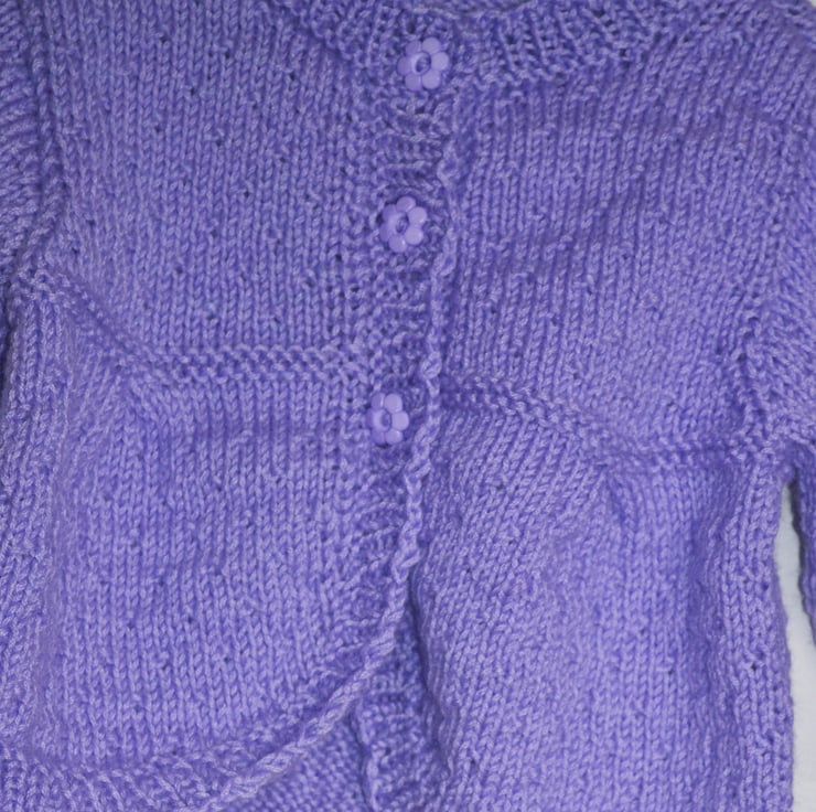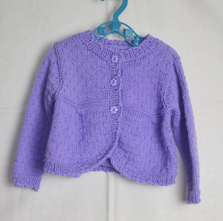 Hand Knitted Baby Cardigan Lilac Nylon Acrylic 9-12 months Lang Yarns