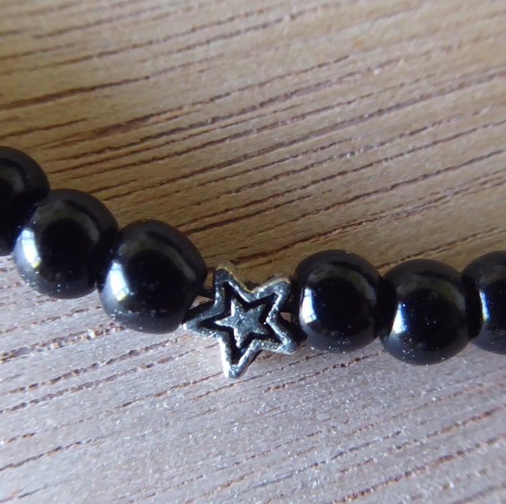 Delicate Black Bead Bracelet with Silver stars