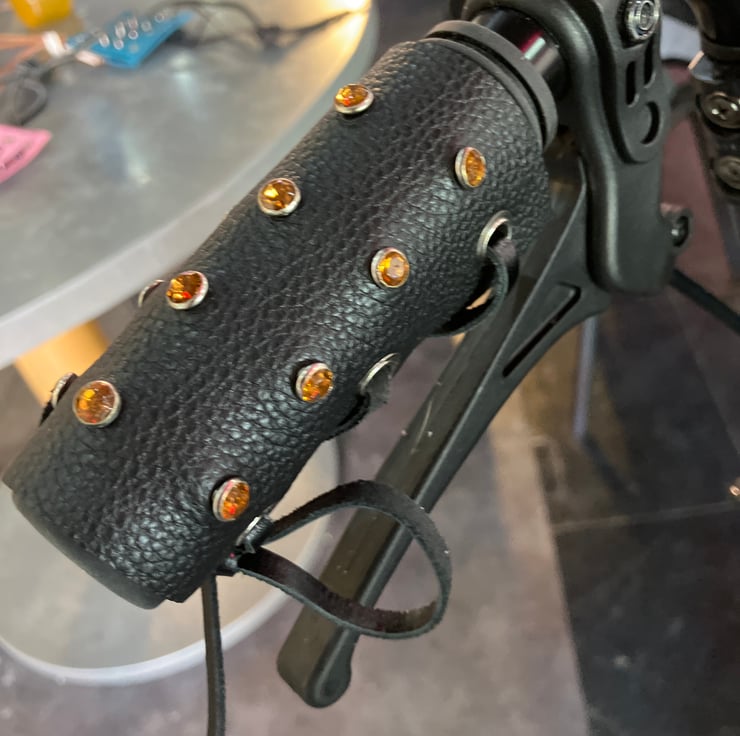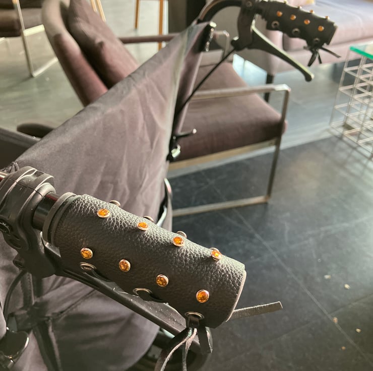 Black Leather Wheelchair Handle Decorations with Orange Gemstones
