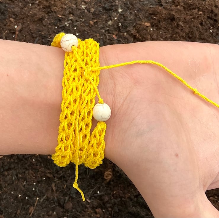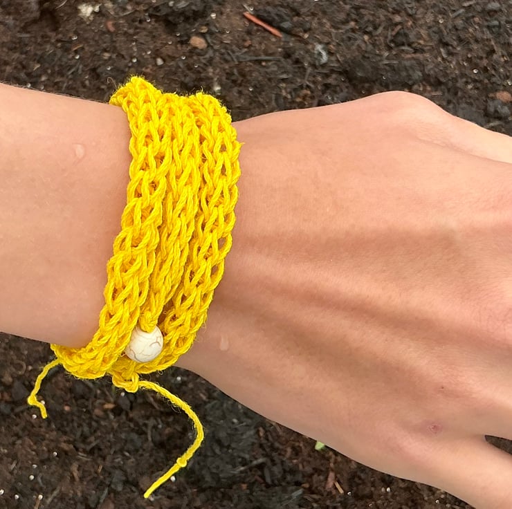 Hand Knitted Hemp Wrap Bracelet. Yellow Bracelet.