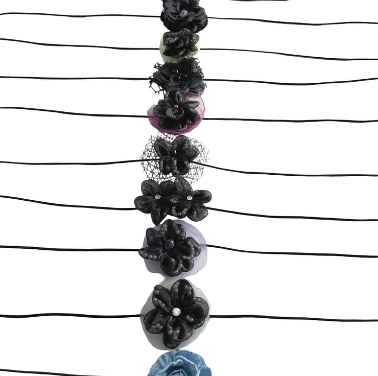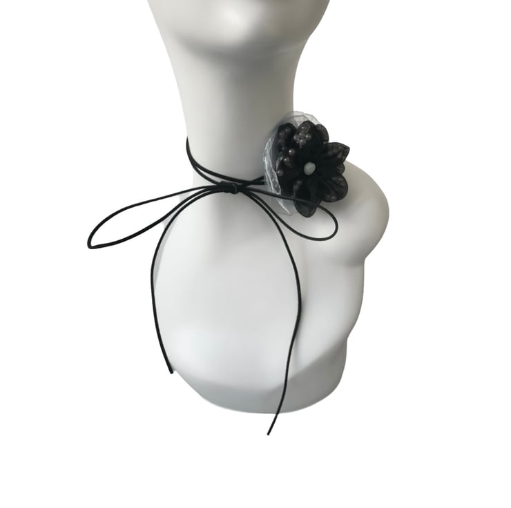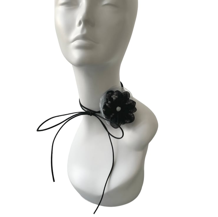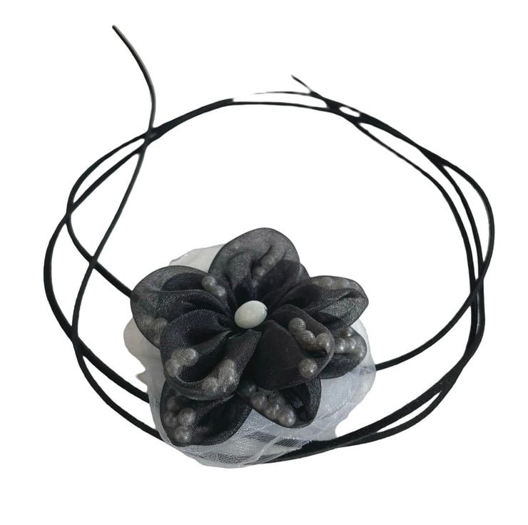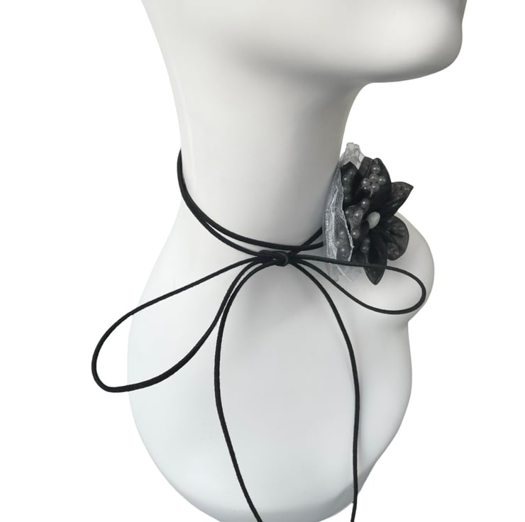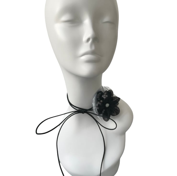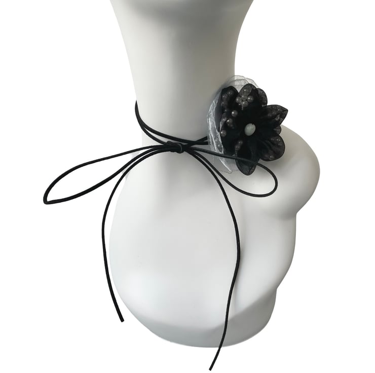 Flower choker Black and pale blue organza fabric flower corsage tie choker