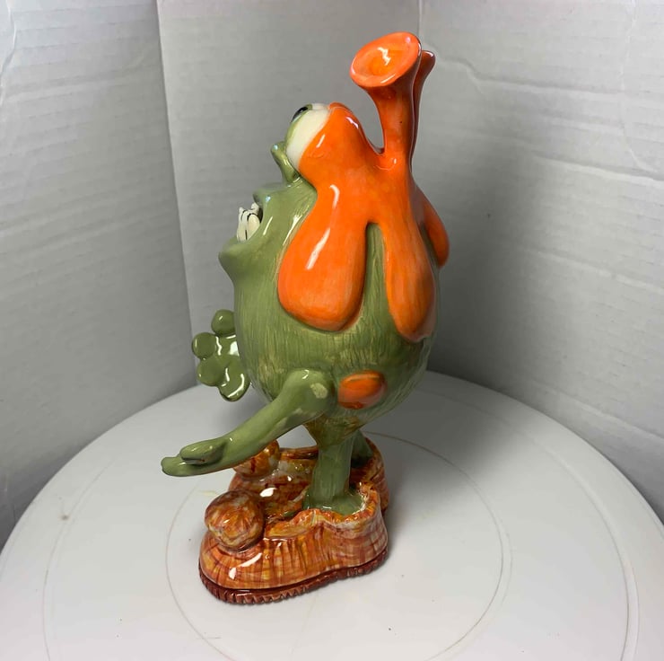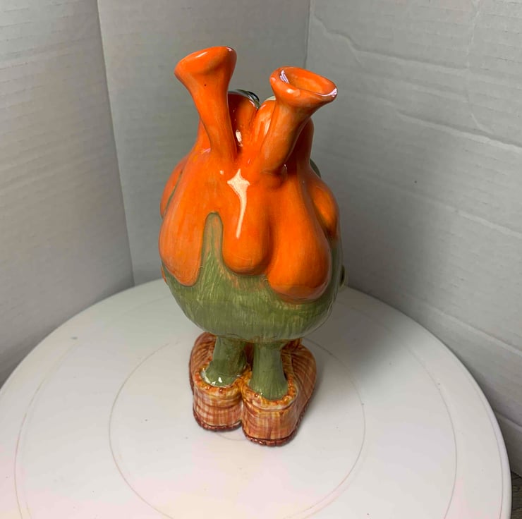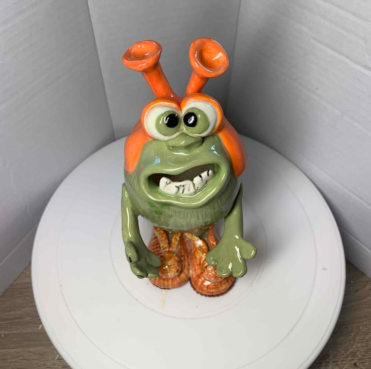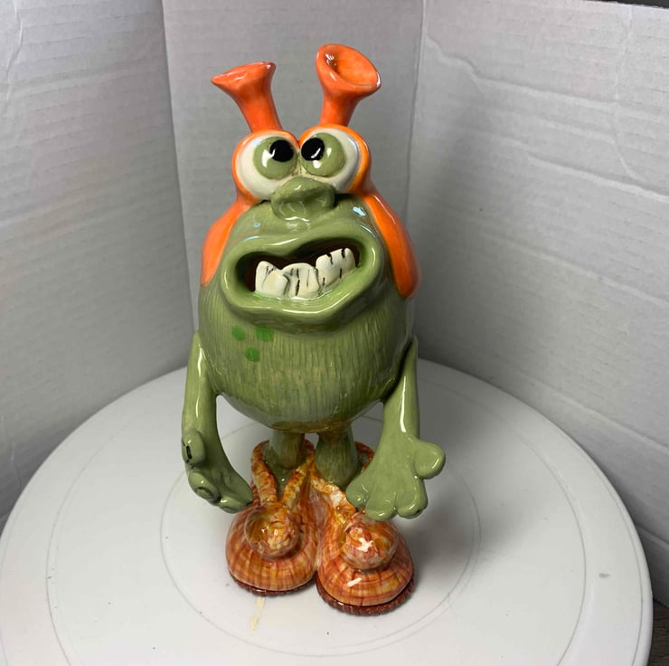 This quirky colourful monster in his grandad slippers is a unique one off fun decorative piece. Surely someone would love to give him a home ?