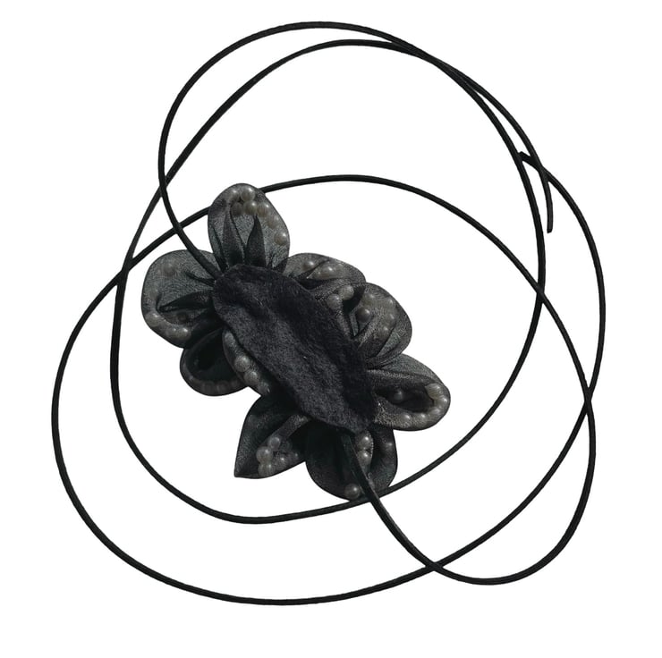 Black flower choker necklace Corsage summer choker necklace with white pearls