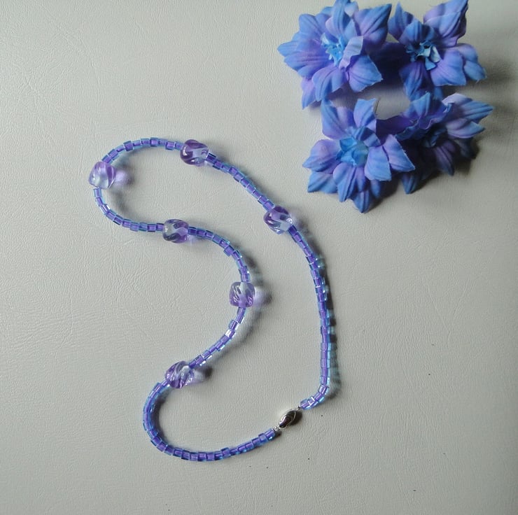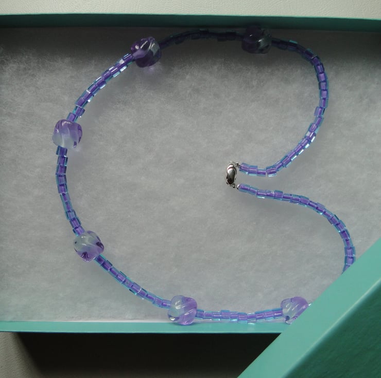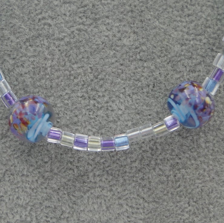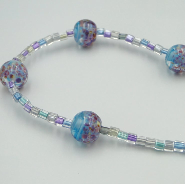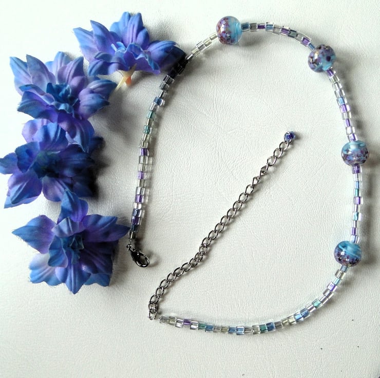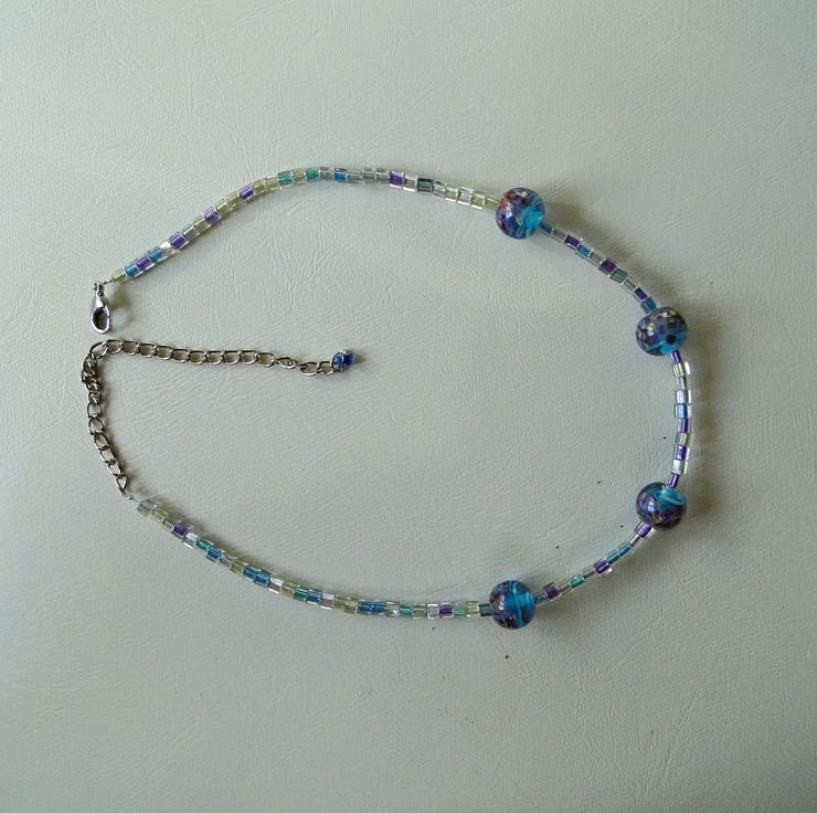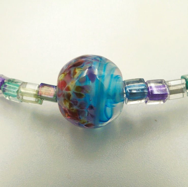 There are 4 lampwork focal beads made in the UK that give a beautiful colour to his necklace.