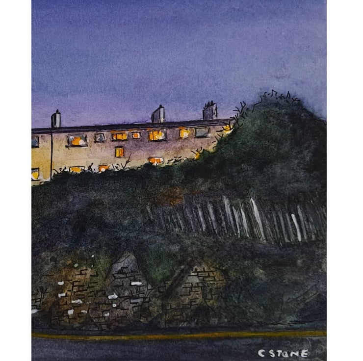 This view reflects my desire to paint the less touristy areas of Plymouth. The view is of Ford Hill, near my home in the Stoke district. I was intrigued by how imposing the block of flats and the tree looked against the fading light of a winter's afternoon.