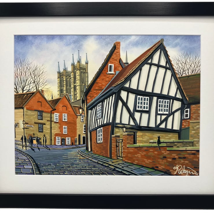 Lincoln Michaelgate Cathedral, Urban Cityscape Framed Art Print 14" x 11" Frame