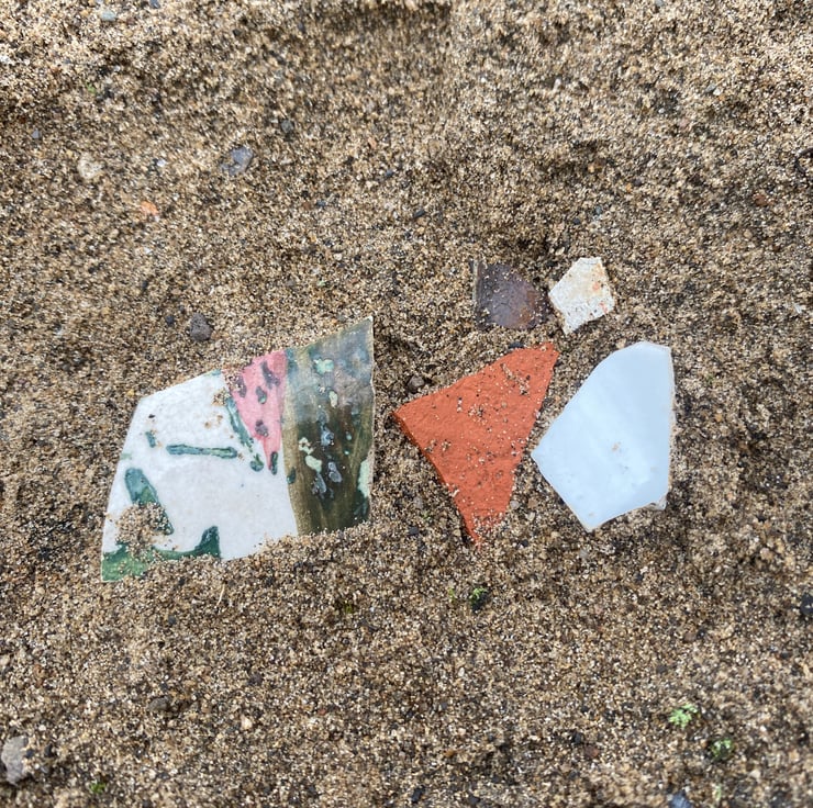 The idea is to re-invent the ceramic found but keep its original character. The finished piece isn't meant to be perfect or highly polished. Instead, retain marks, stains and scratches, part of the original shard and it’s journey.