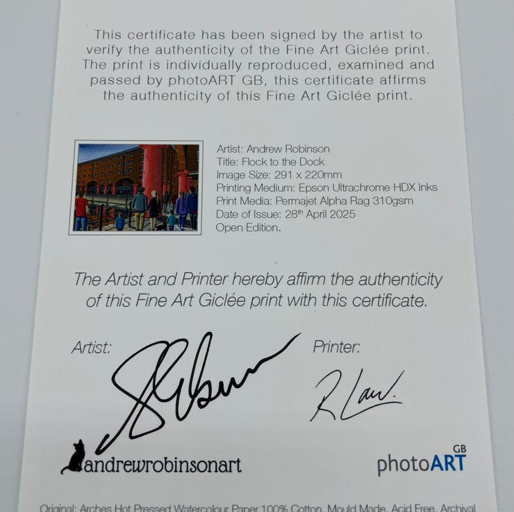 The framed print comes with a 'Certificate of Authenticity' which documents the details of the original painting and the art print. The Certificate of Authenticity is affirmed with a signature from both myself (the artist) and the printer.
