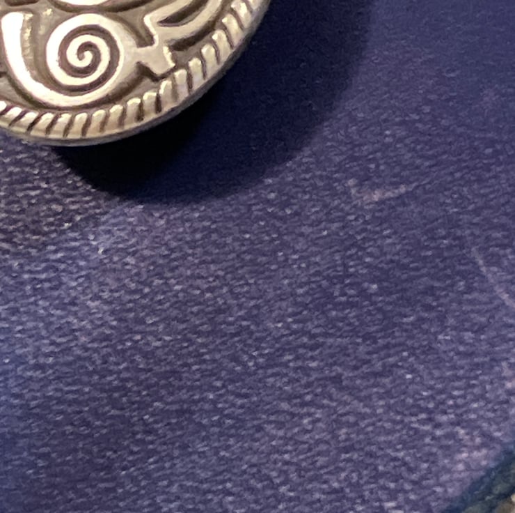Handmade by me. (I even dyed the leather on this one). Hand dyed blue // acrylic finishing spray to seal in leather dye