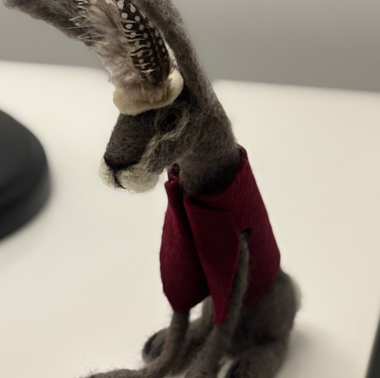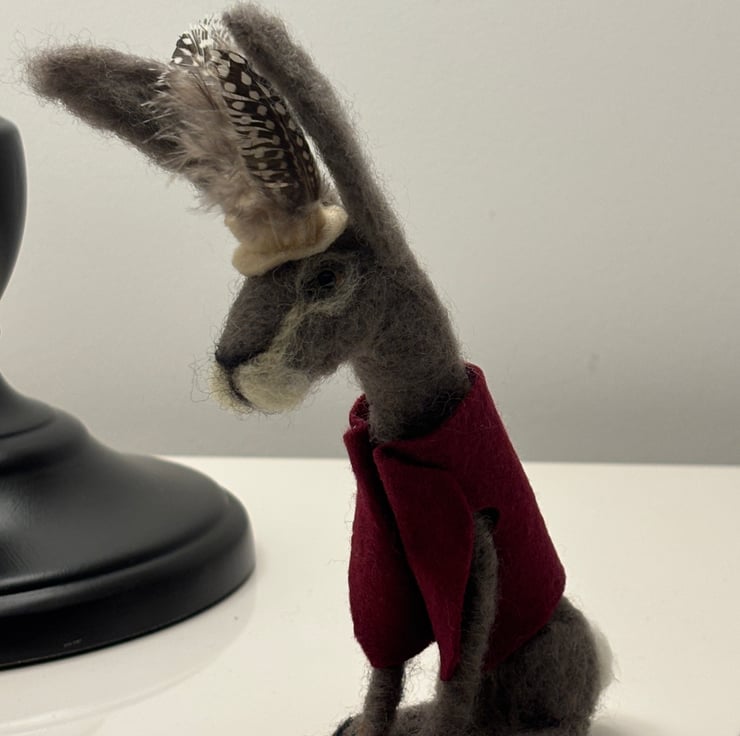 I was lucky enough to spot a hare in Ramsbury, Wiltshire a few weeks ago. The first time in years. Hares are a very popular item to felt, I think it’s those long ears and legs. And of course who doesn’t like a bit of dress up