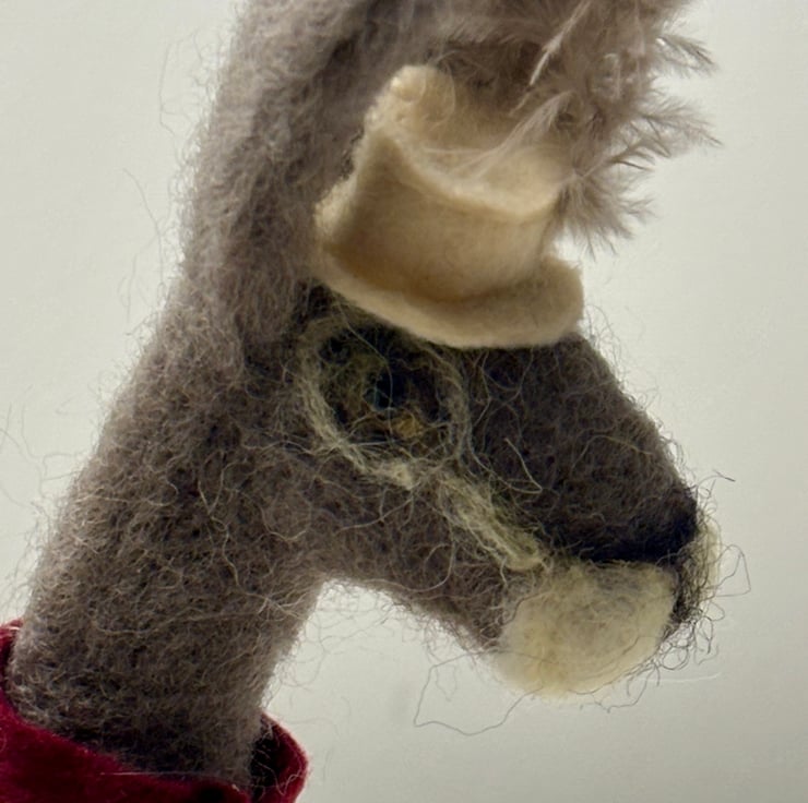 A very dapper chap ready for the races. Needle felted and hand crafted, each one unique and individually. This little fellow stands approx 18cm tall