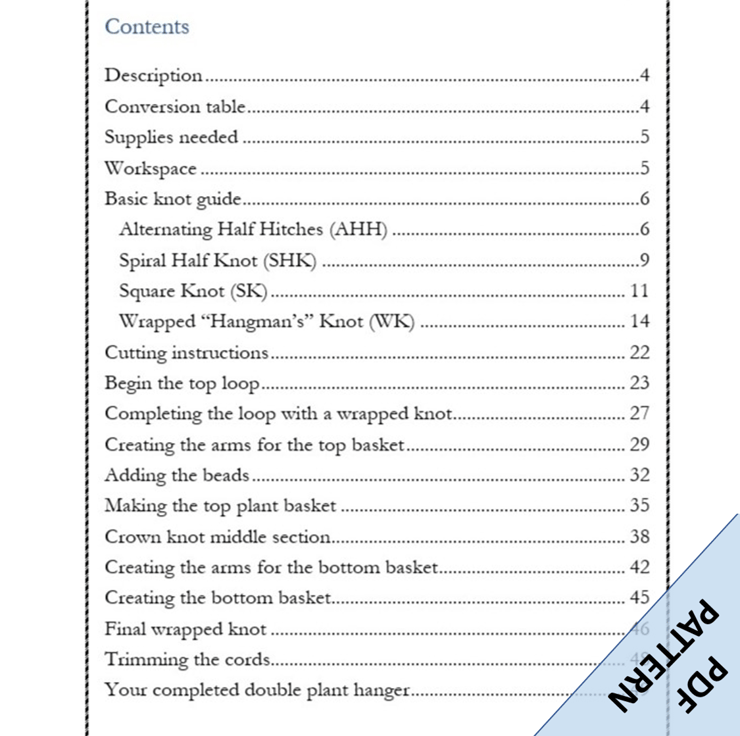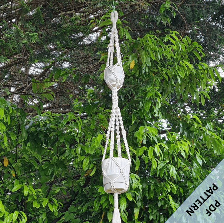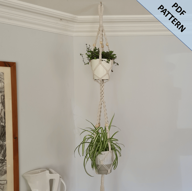 Macrame double plant hanger pattern. This design is a perfect project for beginners. Approximate size once completed: H165cm, W15cm
