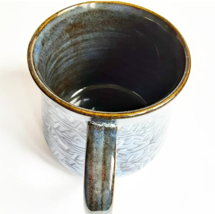 Blue Patterned Glazed Mug - Hand Thrown Stoneware Ceramic Mug