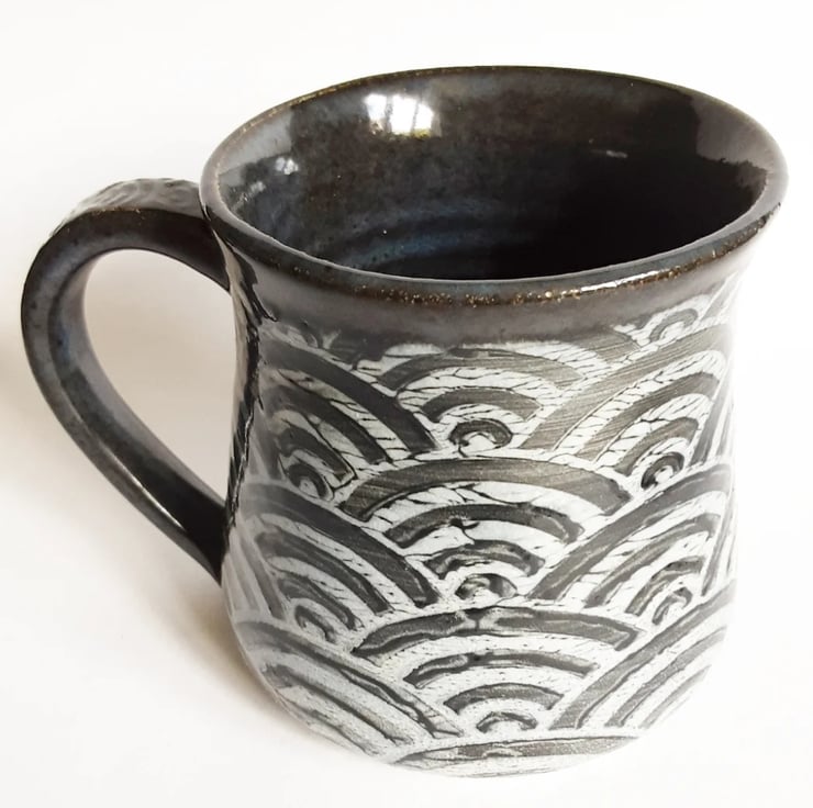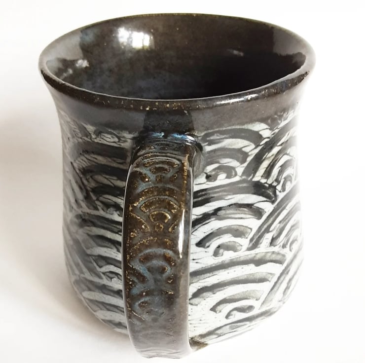 Blue Patterned Glazed Mug - Hand Thrown Stoneware Ceramic Mug