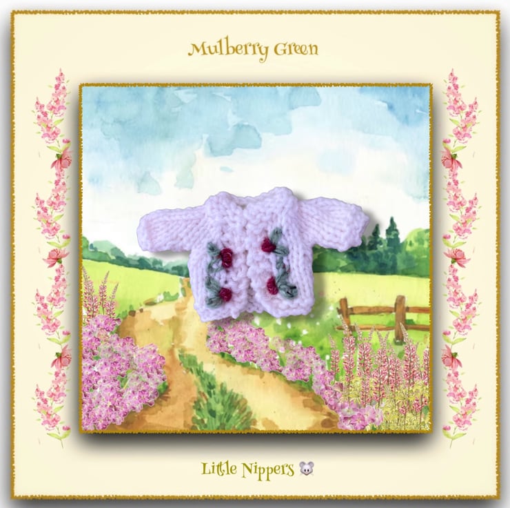 A sweet little pink cardigan, embroidered with tiny flowers, made specially to fit the Little Nippers.