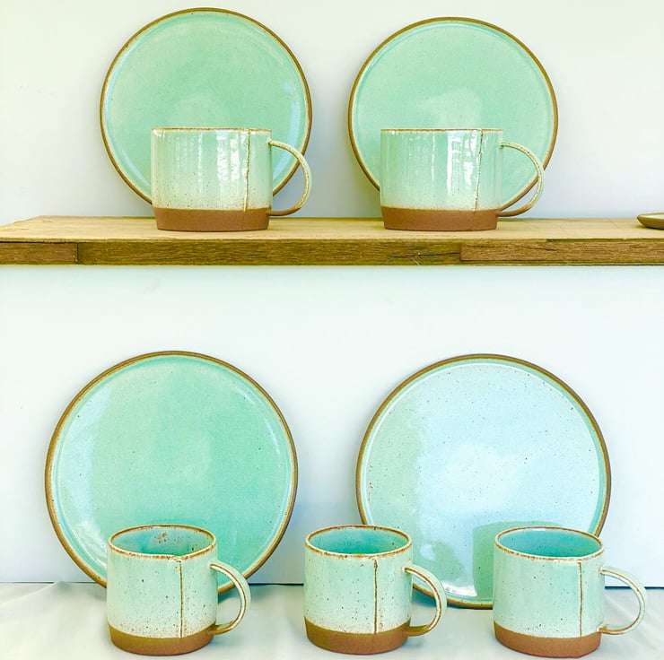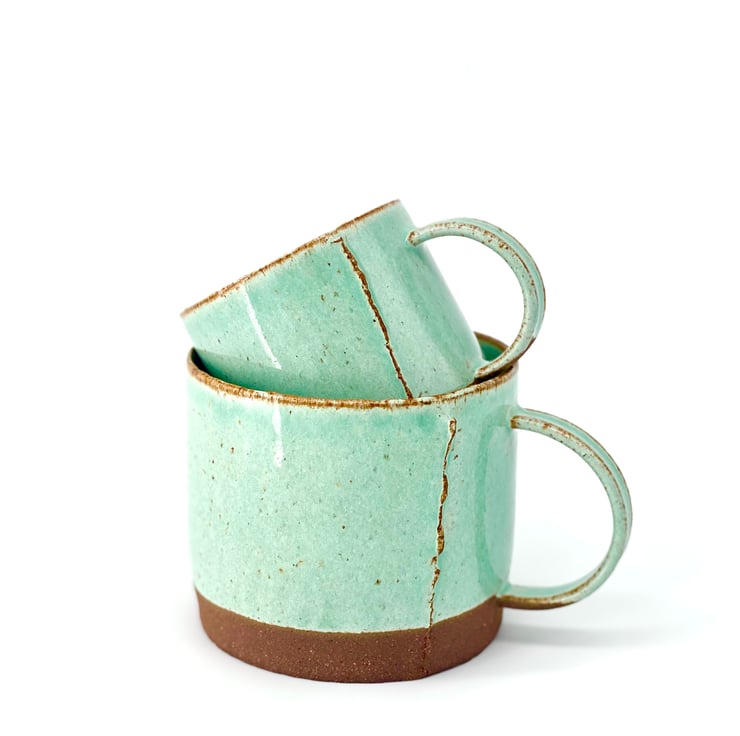 Gorgeous sea green mugs with seam detail. (I make them from thin slabs of clay)
