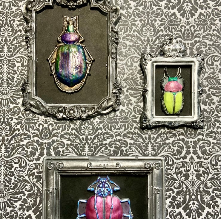 Inspired by natural history cabinets of curiosity. I look to emulate on a much smaller scale. Sustainable and ethically made, these collections will add a touch gothic elegance to any wall or bookcase.