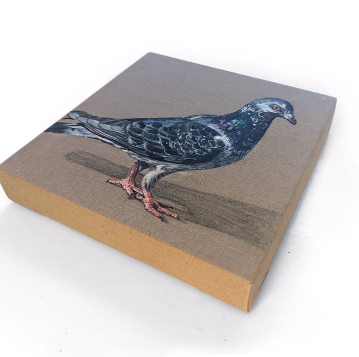 In my artwork, I aim to restore a sense of individuality and dignity to these birds. Working from my own photographs, I paint each pigeon on its own canvas, capturing its unique colours and personality.