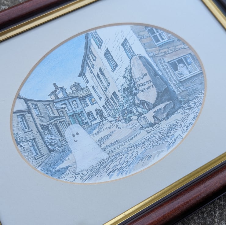We take old pictures, postcards, paintings and add our hand painted ghosts using acrylic or watercolour paint. We do not own the rights or claim to be the original artist of the scene.
