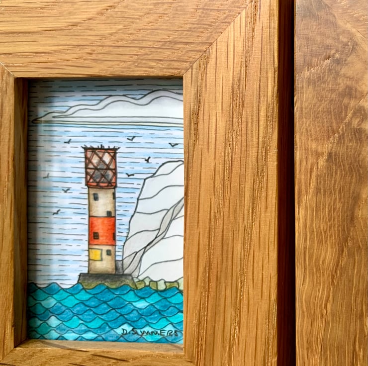 Bring a piece of the Isle of Wight's maritime charm into your home with this hand-drawn triptych artwork. Featuring the iconic Needles Lighthouse and two vibrant sailboats. Each of the three miniature drawings is meticulously created in ink and pencil, capturing the essence of island life.