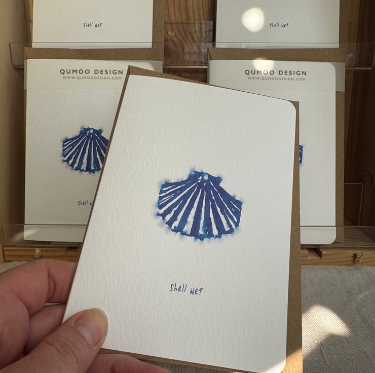 Shell we? blank greetings card: Spread joy and celebrate with this stylish, blank individual A6 greeting card. Options to buy individually, multipack of 5 and unframed mounted.