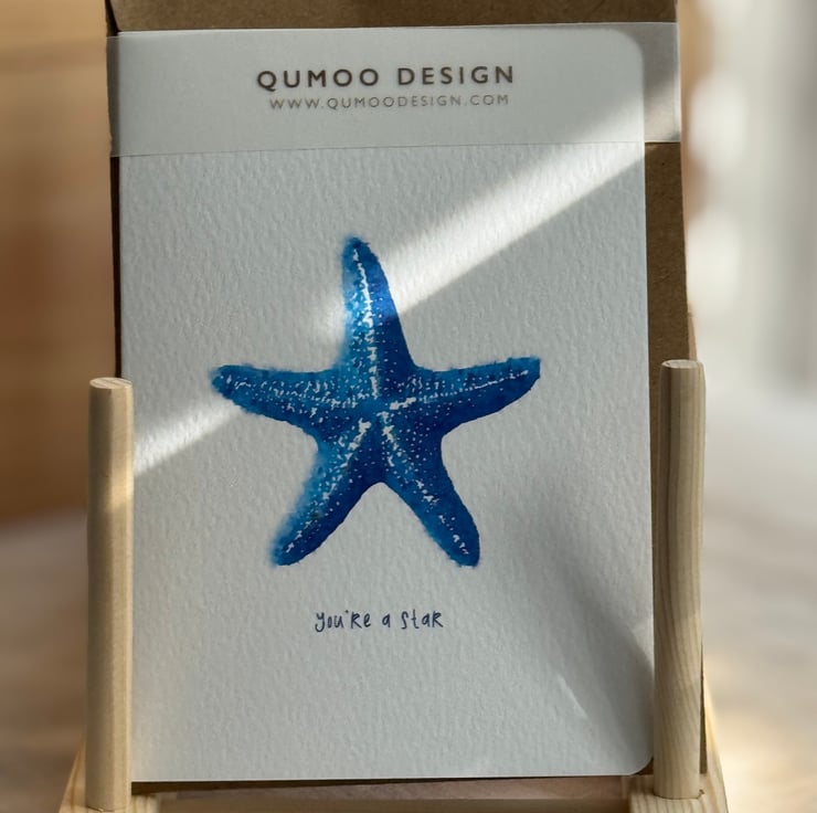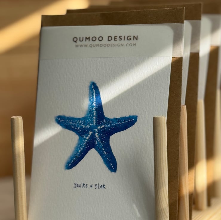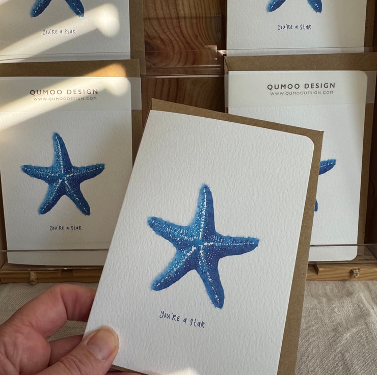 Starfish you're a star blank thank you blank greetings Card: Spread joy and celebrate with this stylish, blank individual A6 greeting card. Options to buy individually, multipack of 5 and unframed mounted.