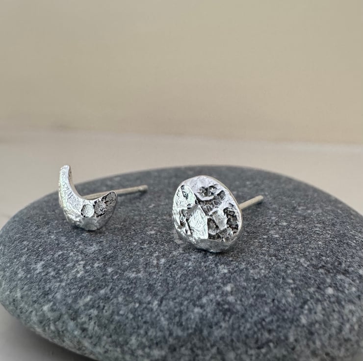 Moon phase studs - molten moons - recycled sterling silver stud earrings